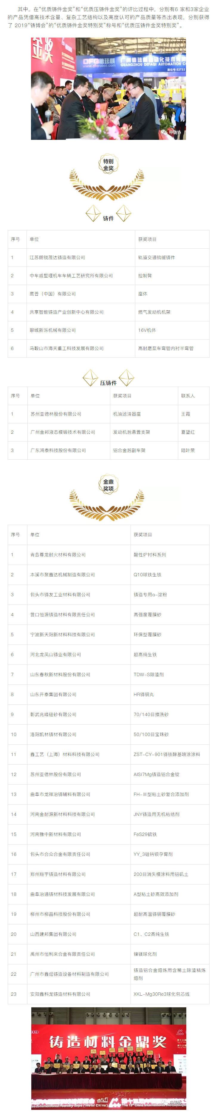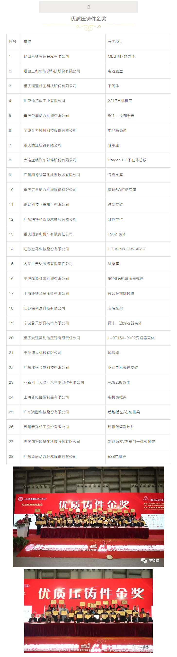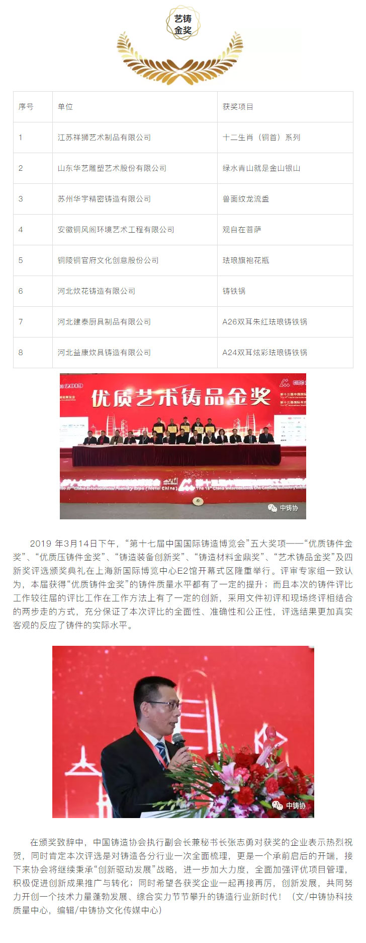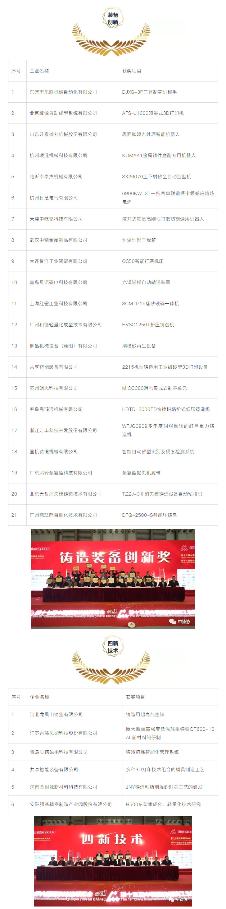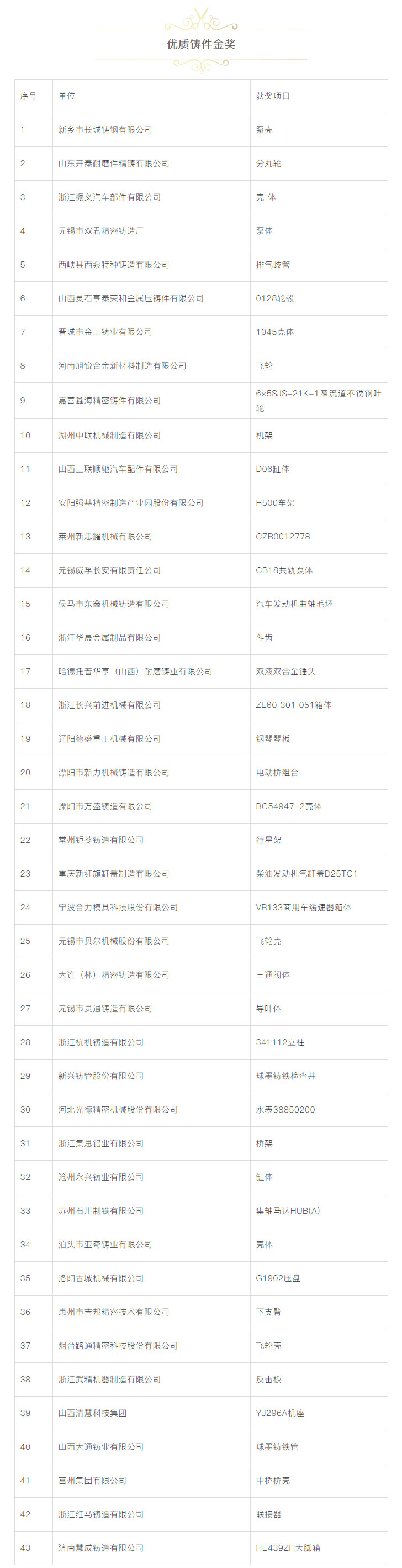為了進一步鼓勵鑄造行業(yè)科技創(chuàng)新,推動鑄造行業(yè)質(zhì)量工作,更好地服務(wù)于鑄造行業(yè)轉(zhuǎn)型升級,本著“評先獎優(yōu)”’的原則,中國鑄造協(xié)會在“第十七屆中國國際鑄造博覽會”及“第十三屆中國國際壓鑄工業(yè)展覽會”期間,繼續(xù)對參展的鑄件、壓鑄件、鑄造裝備、鑄造材料、藝術(shù)鑄品及四新技術(shù)開展了評比活動。本次評選活動得到廣大參展商的大力支持,共有154家企業(yè)的200余件展品參與申報評優(yōu)。